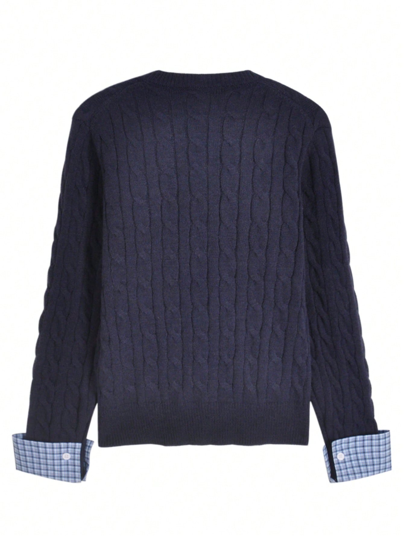 Women's Winter Cardigan Sweater - Off-Shoulder/Boat Neck Collegiate Style Color Block Plaid Patchwork Jacket, Machine Washable Patchwork Sweaters for Layering (Autumn/Winter)