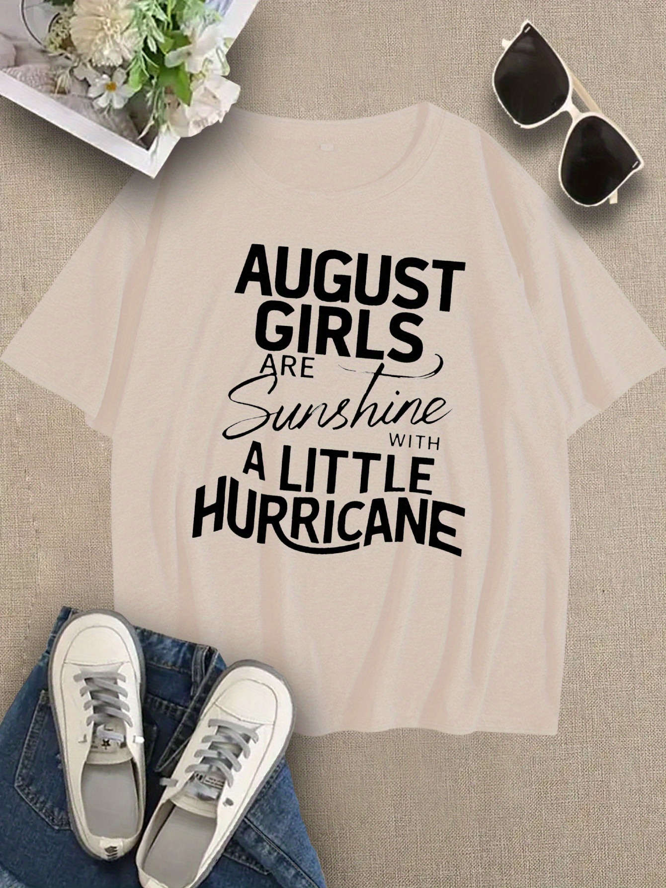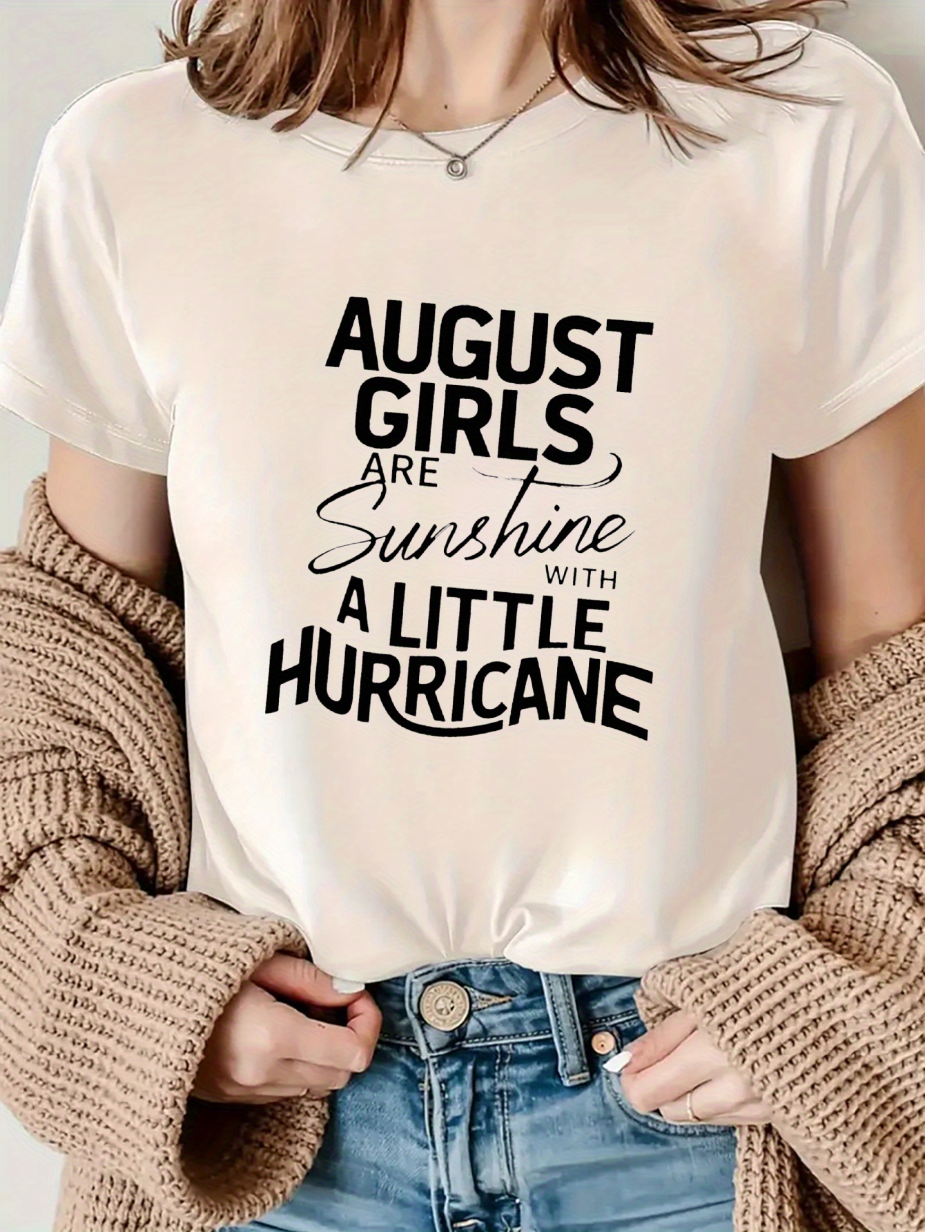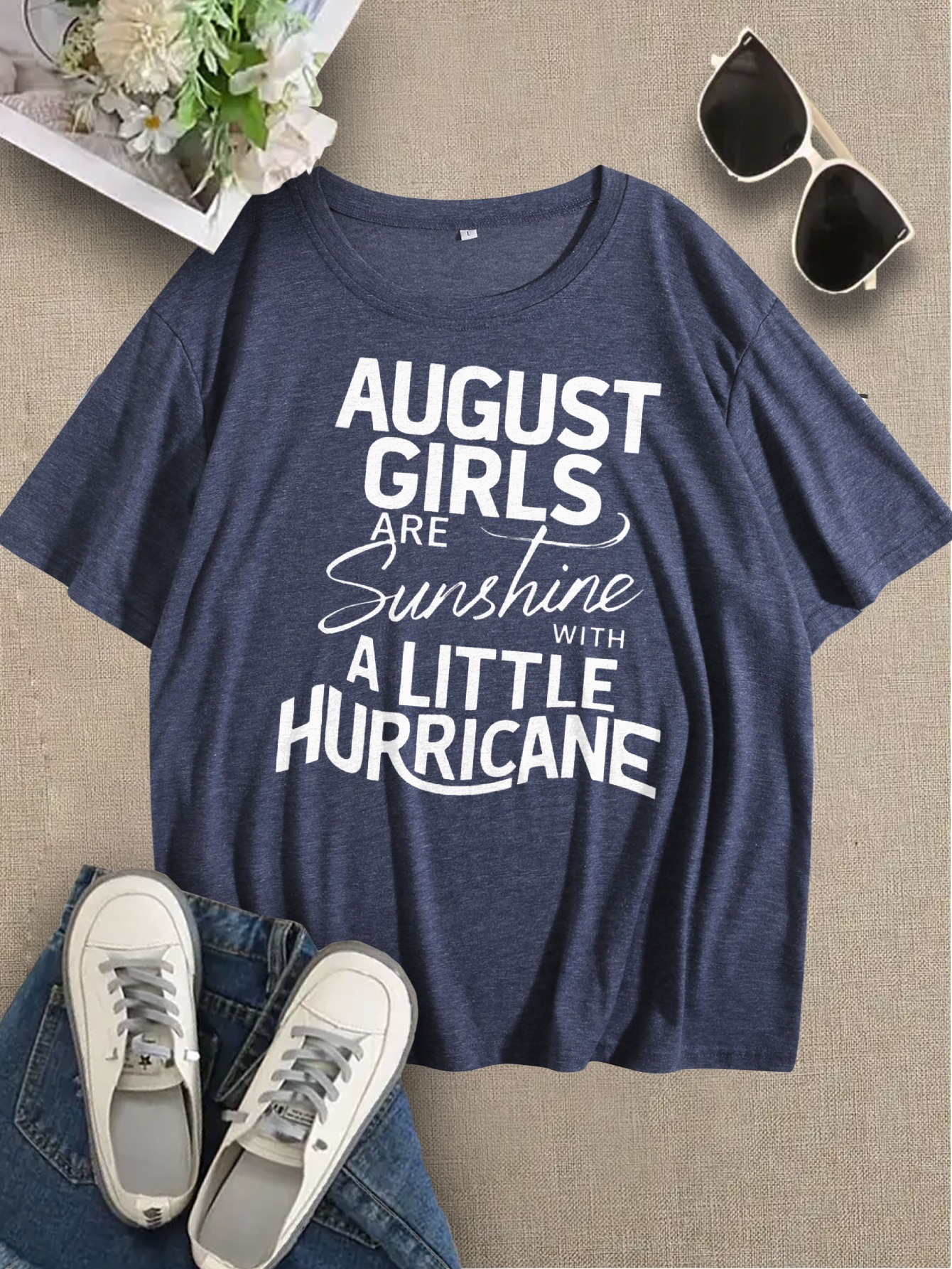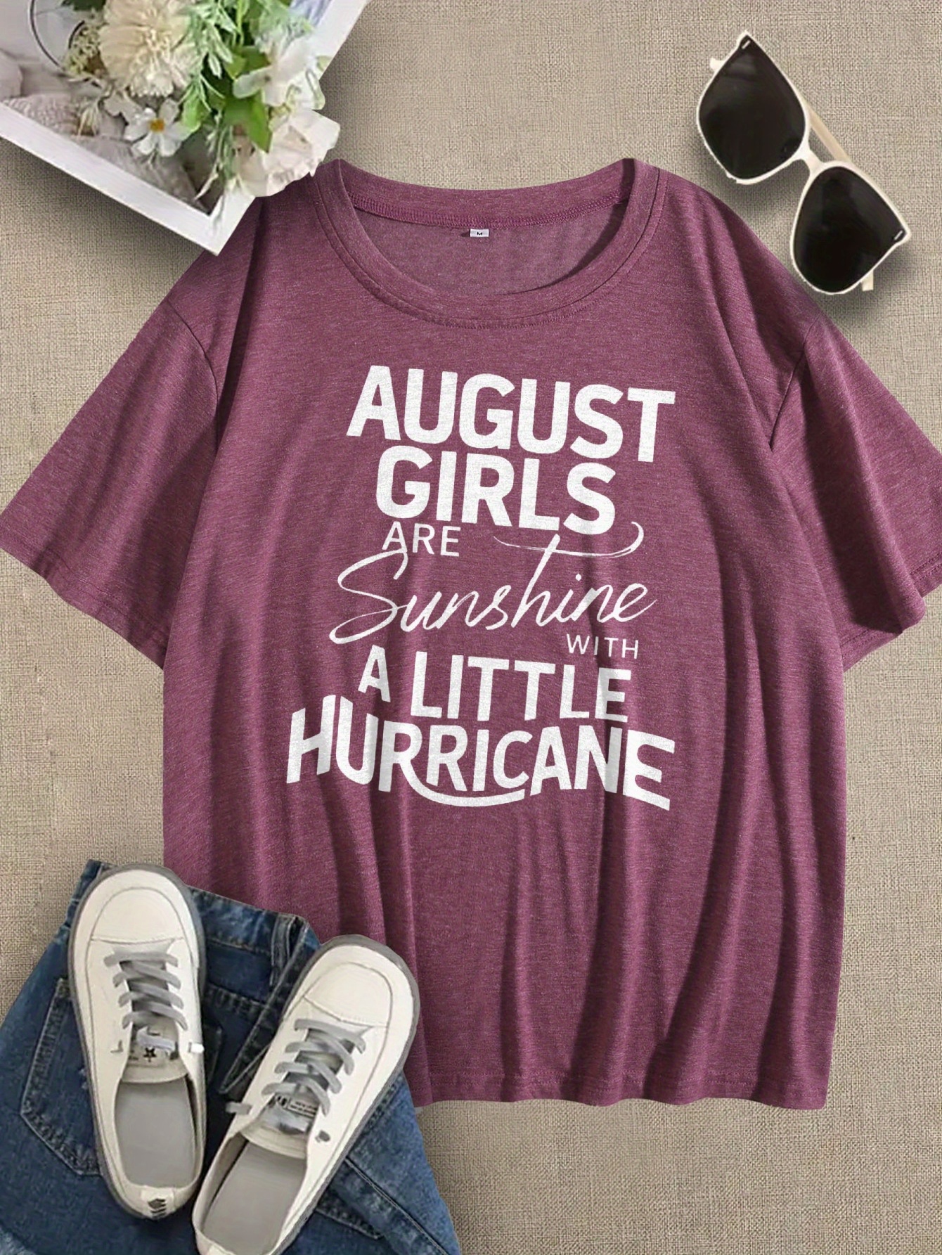 [August Sunshine T-Shirt] Women's August Sunshine & Hurricane Quote T-Shirt - Dark Grey with White Text - Breathable Everyday Summer Tee - Birthday Outfit Idea - Machine Washable Casual Streetwear Top, Graphic Text Shirt, Comfortable Fabric