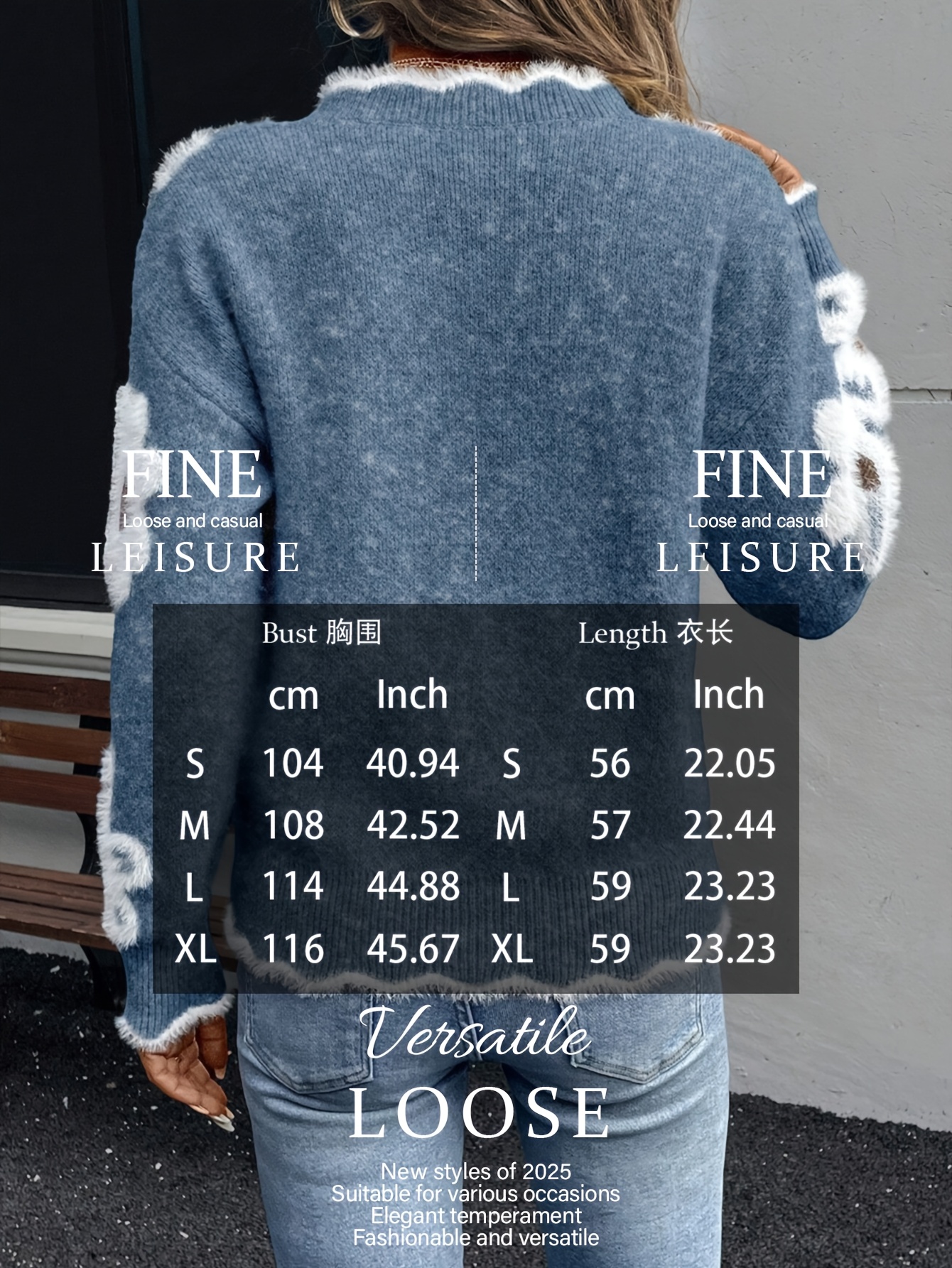 Block Long-Sleeve Sweater, Warm and Gentle with Plush Flower Prints and Lace V-Neck, Gentle Lazy and Sweet Fashionable and Elegant, Blue Color, Best-Selling Item on Pre-Order