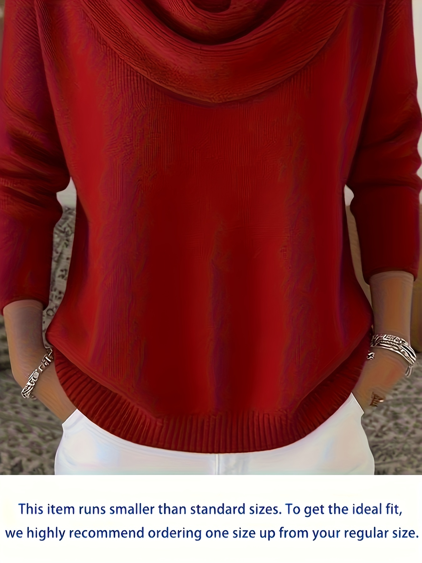 Christmas Green Elegant Long Sleeve Cowl Neck Sweater - Solid Color Minimalist Top, Women'S Winter Warm Pullover