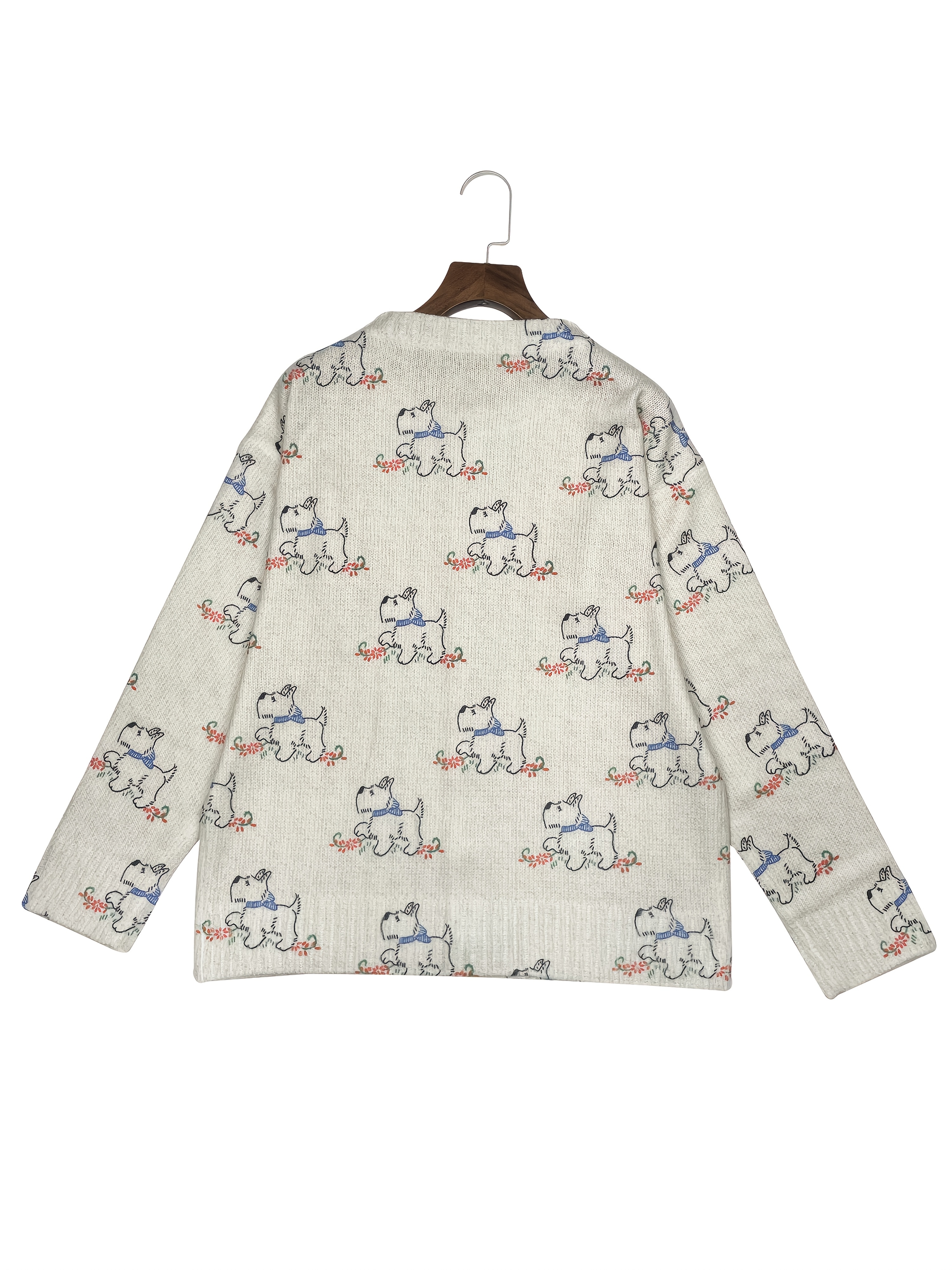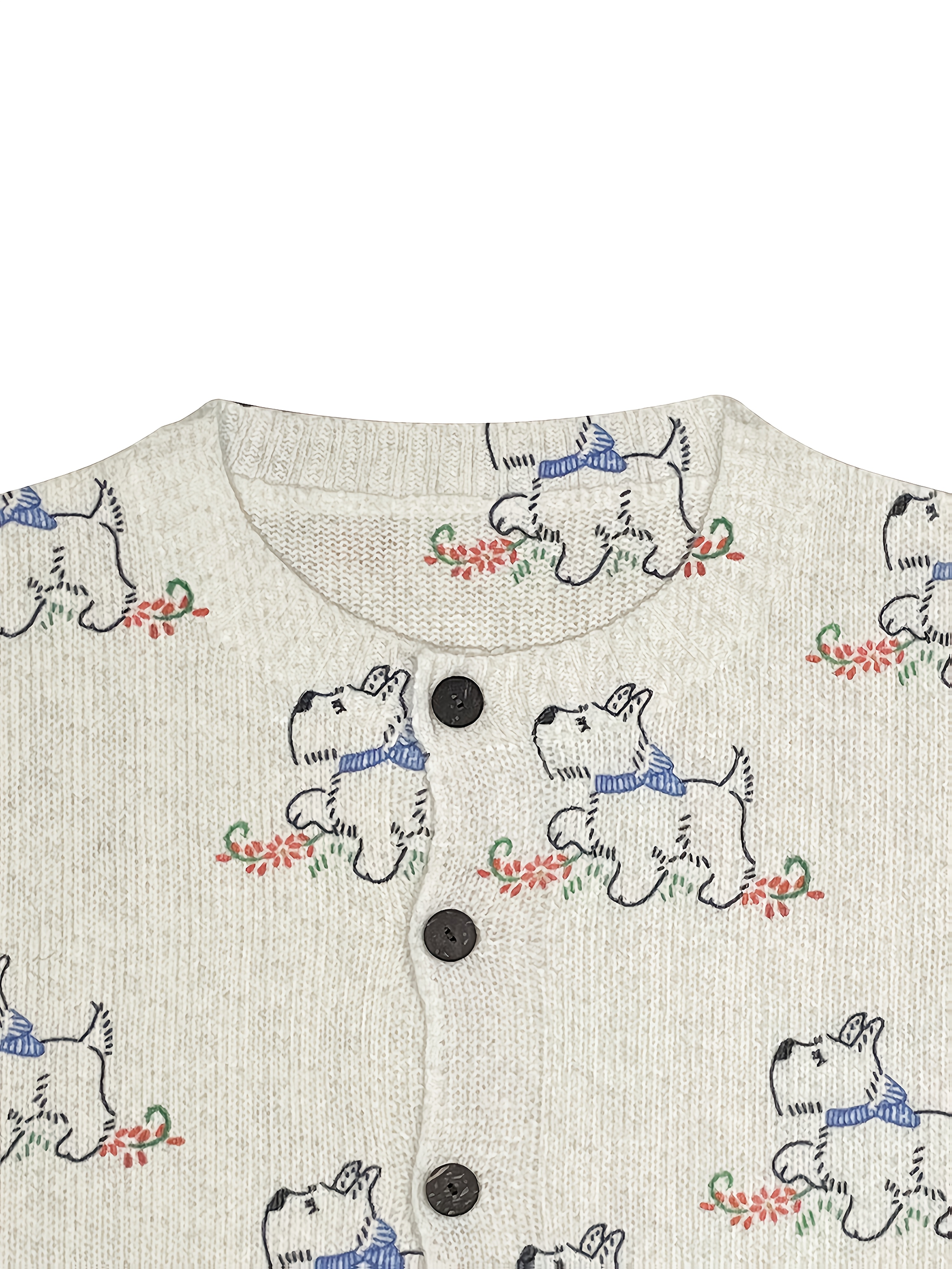[Constructi] Plus Size Women's Elegant Dog Print Cardigan | Cozy Fall/Winter Sweater, Soft & Pug Pattern, Button Front, Long Sleeve, Round Neck, All-Over Dog Design, Casual Wear | Playful Dog Design