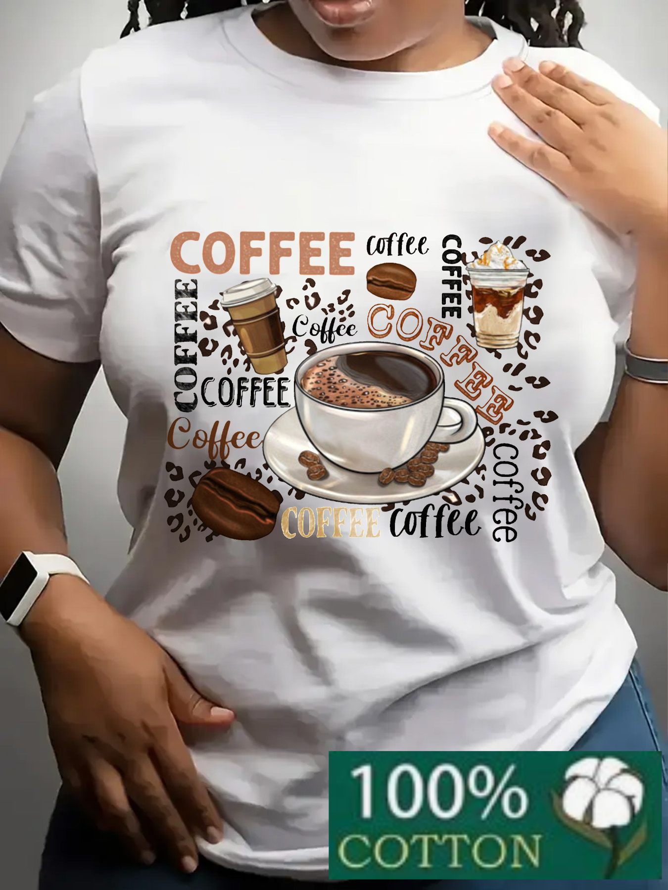 Women's 100% Coffee Lover's T-Shirt - Funny Coffee Cup & Beans Print with Cappuccino, Latte, Mocha, Espresso & Turkish Coffee Design - Casual Loose Fit Short Sleeve Round Neck Green & White Coffee-Themed Apparel for Casual Attire & Coffee Lovers Gift