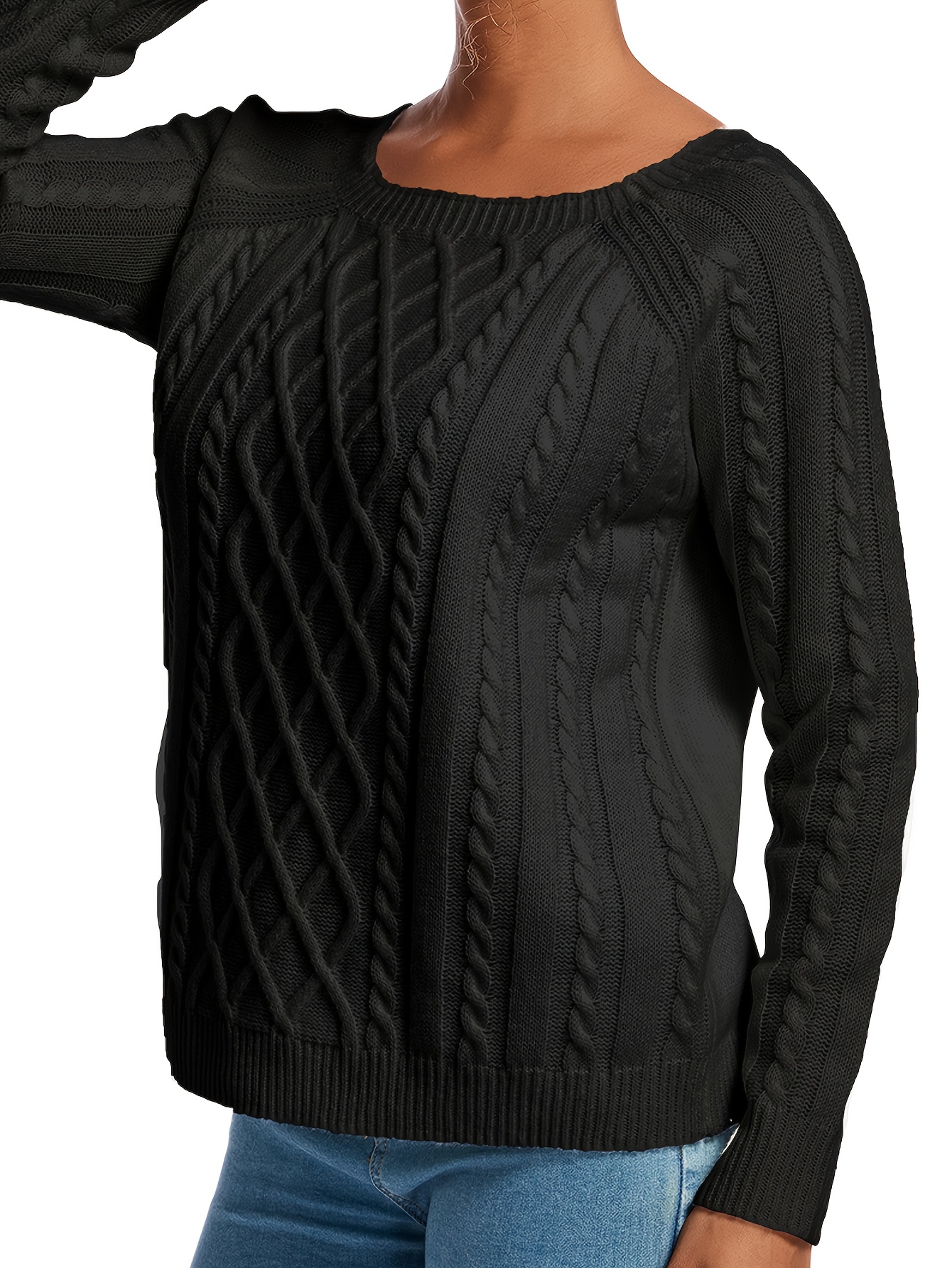 Women's Winter Warm Round Neck Sweater - Soft Casual H-Line Pullover with Drop Shoulder Long Sleeves, Solid Color Blouses-Under Easily Machine Washable Sweaters for Daily Wear (No Bulk to Worry About)