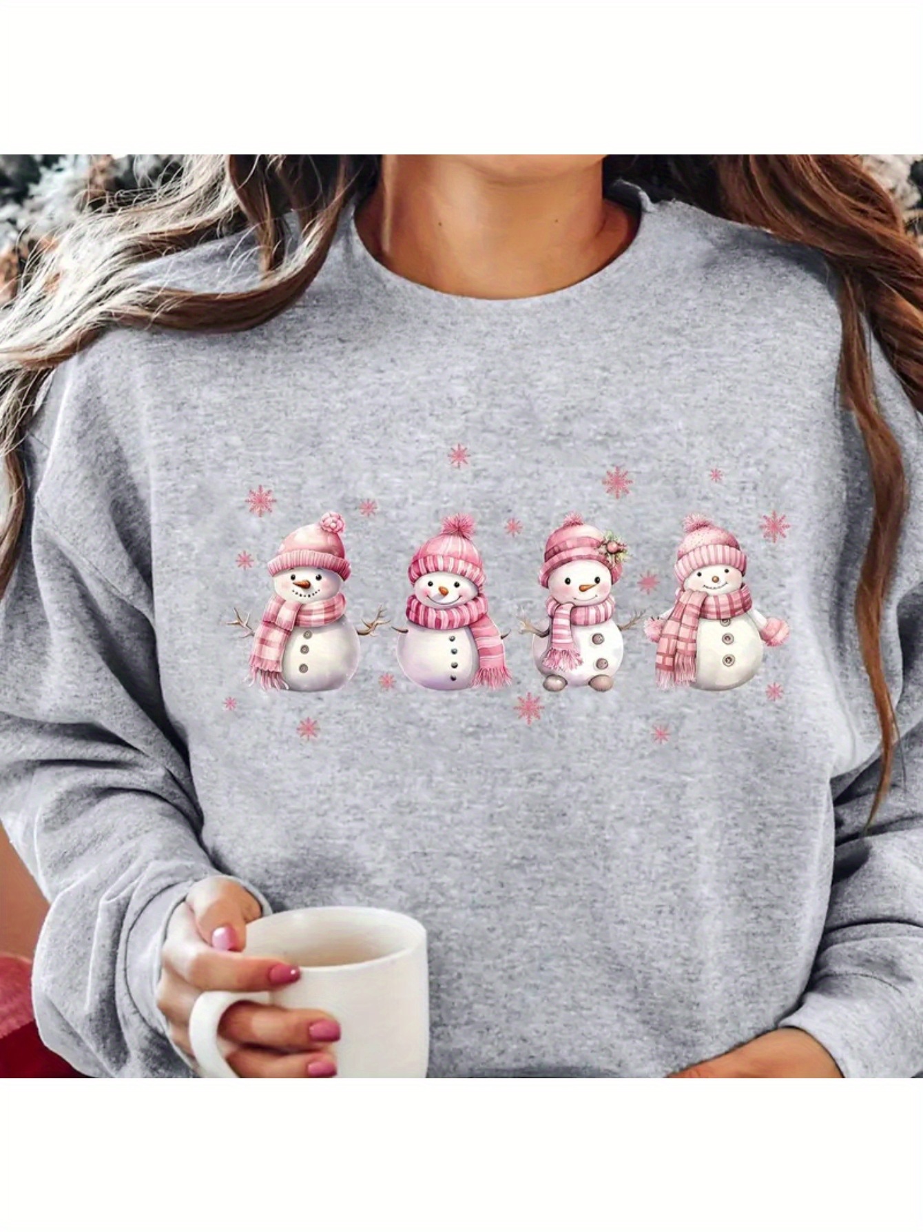 1pc Women's Casual Crew Neck Sweatshirt, Cozy Women's Snowman & Snowflake Print Long Sleeve Pullover for Autumn/ Winter, Grey Sweatshirt