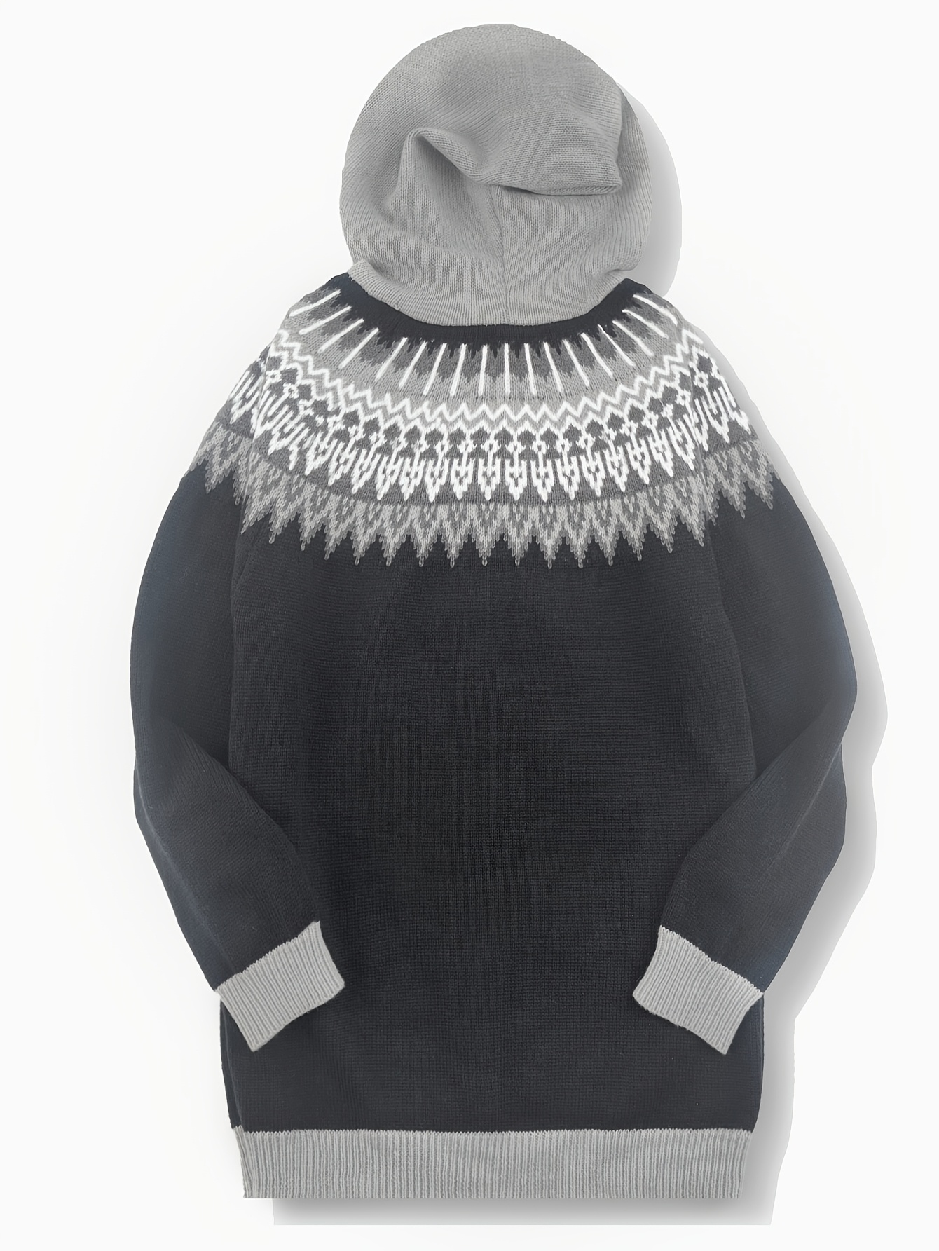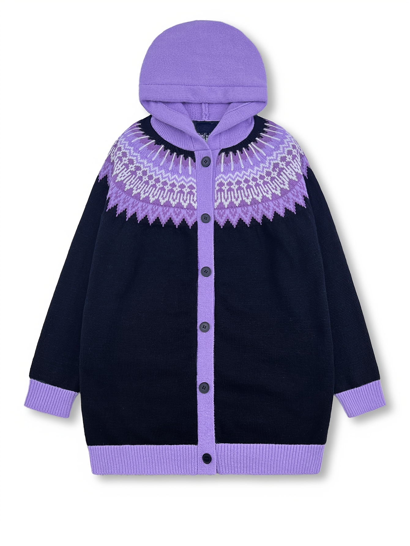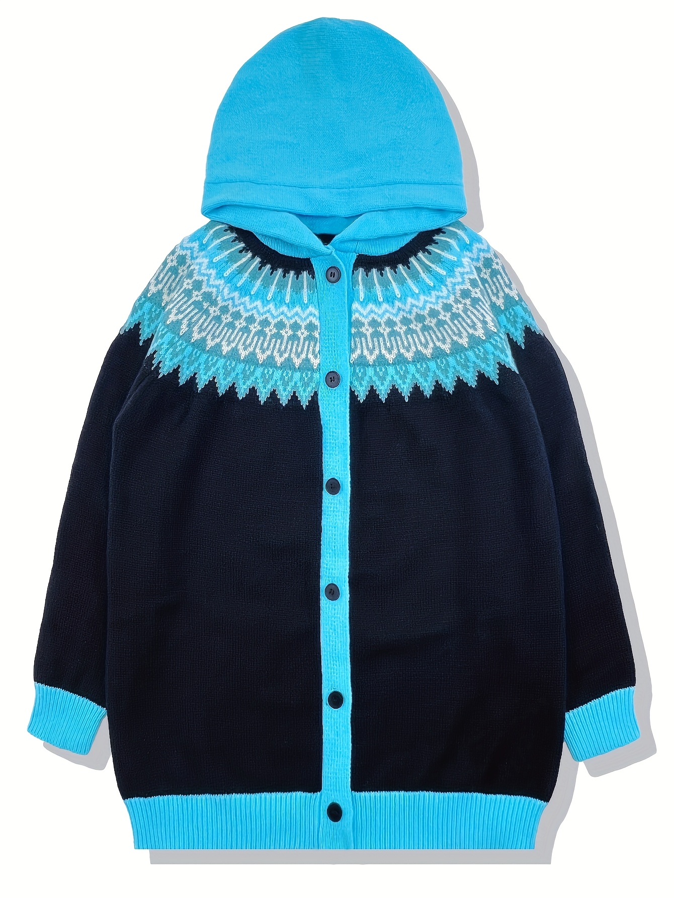 Plus Size, 2D FLAT PATTERN Soft Jacquard Glacier Snow Mountain Hooded Cardigan, Elegant, Fashionable, Comfortable, Casual And Retro Hooded Coat