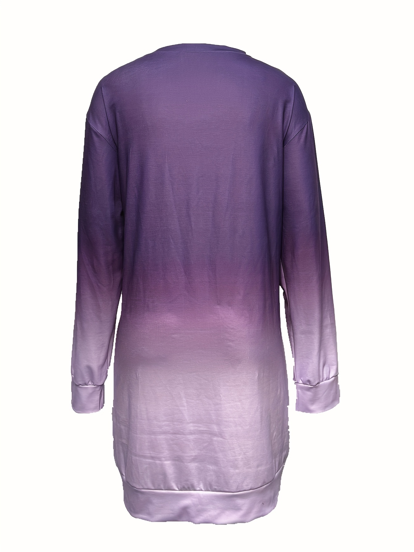 Women'S Plus Size Casual Long Sleeve Pullover Dress - Solid Purple Midi Length A-Line Silhouette with Crew Neck, Slight Stretch Fabric, Cozy Fall/Winter Dress with Pocket Detail & Smooth Texture for Everyday & Semi-Formal Wear - Easy-Care Versatile
