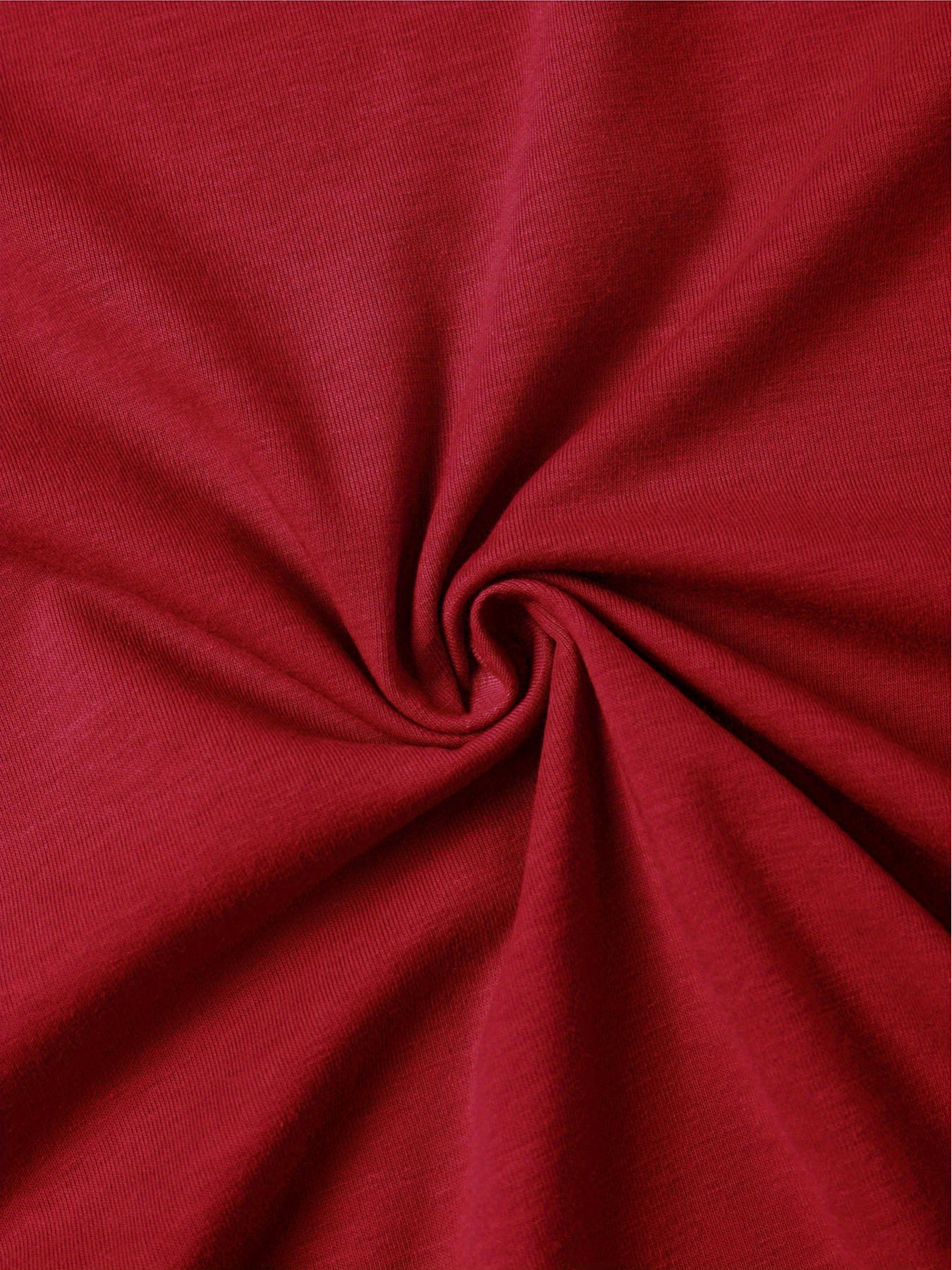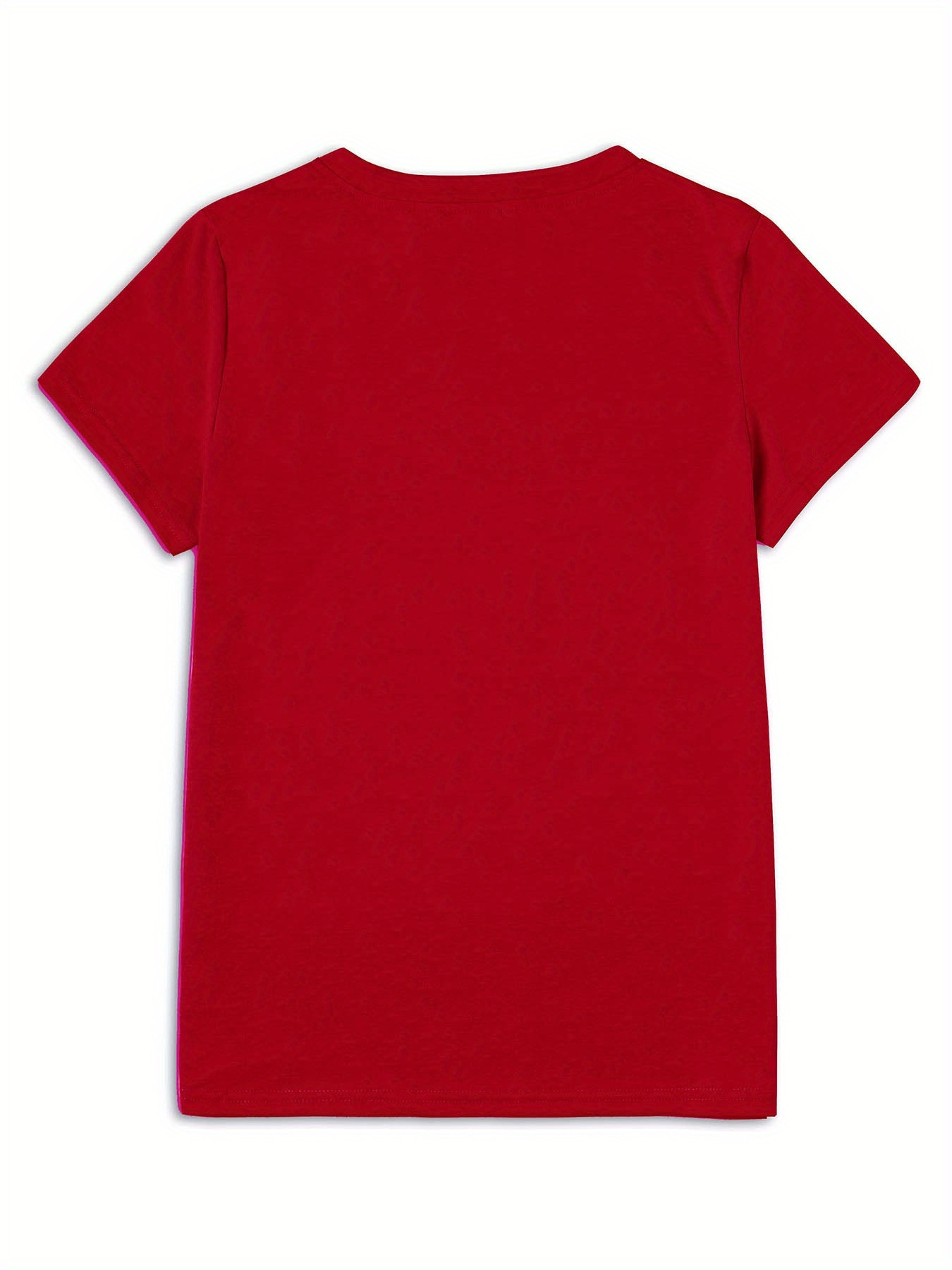 Women's Red Christmas T-Shirt with Santa & Reindeer Print, Merry Christmas Lettering & Gingerbread Men - Casual Round Neck Short Sleeve Holiday Party Outfit, All-Season Wear (Machine Washable) - Festive Gift Apparel
