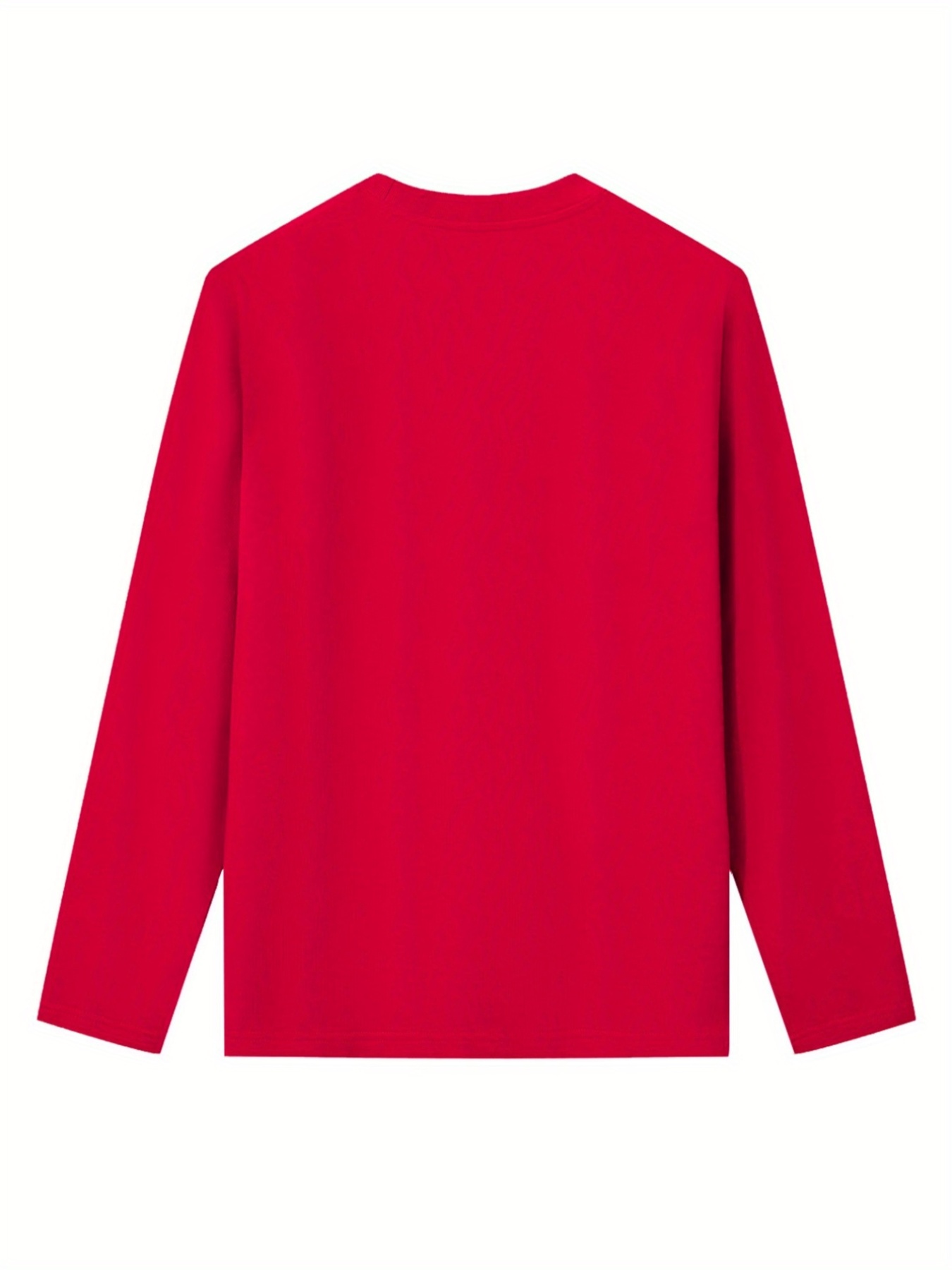 Women's Red Christmas Tree Print Long Sleeve T-Shirt - Golden Star & Swirl Holiday Top, Loose Fit Casual Round Neck Blouse for Parties, Casual Attire & Xmas Outfits (Golden/Green, All-Season)