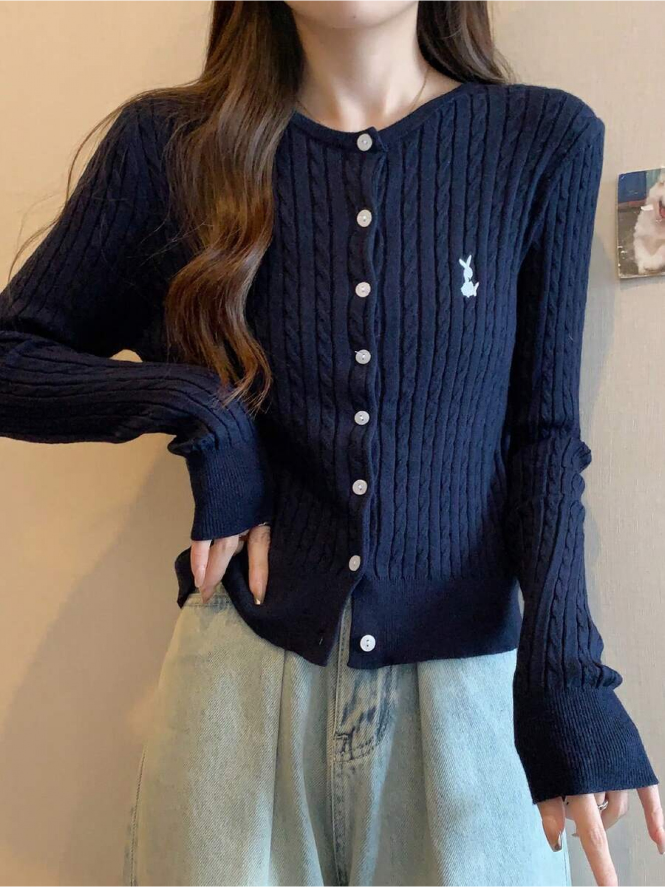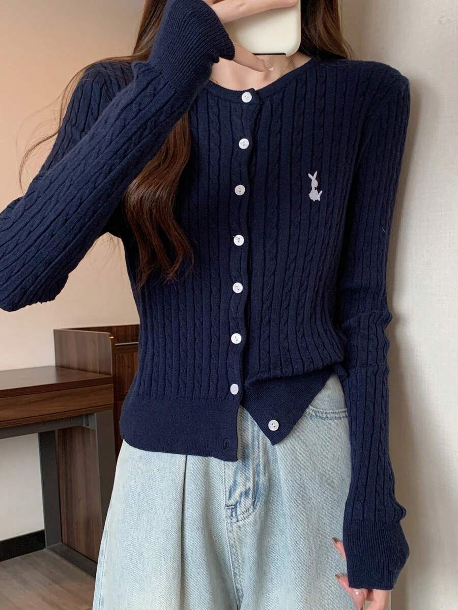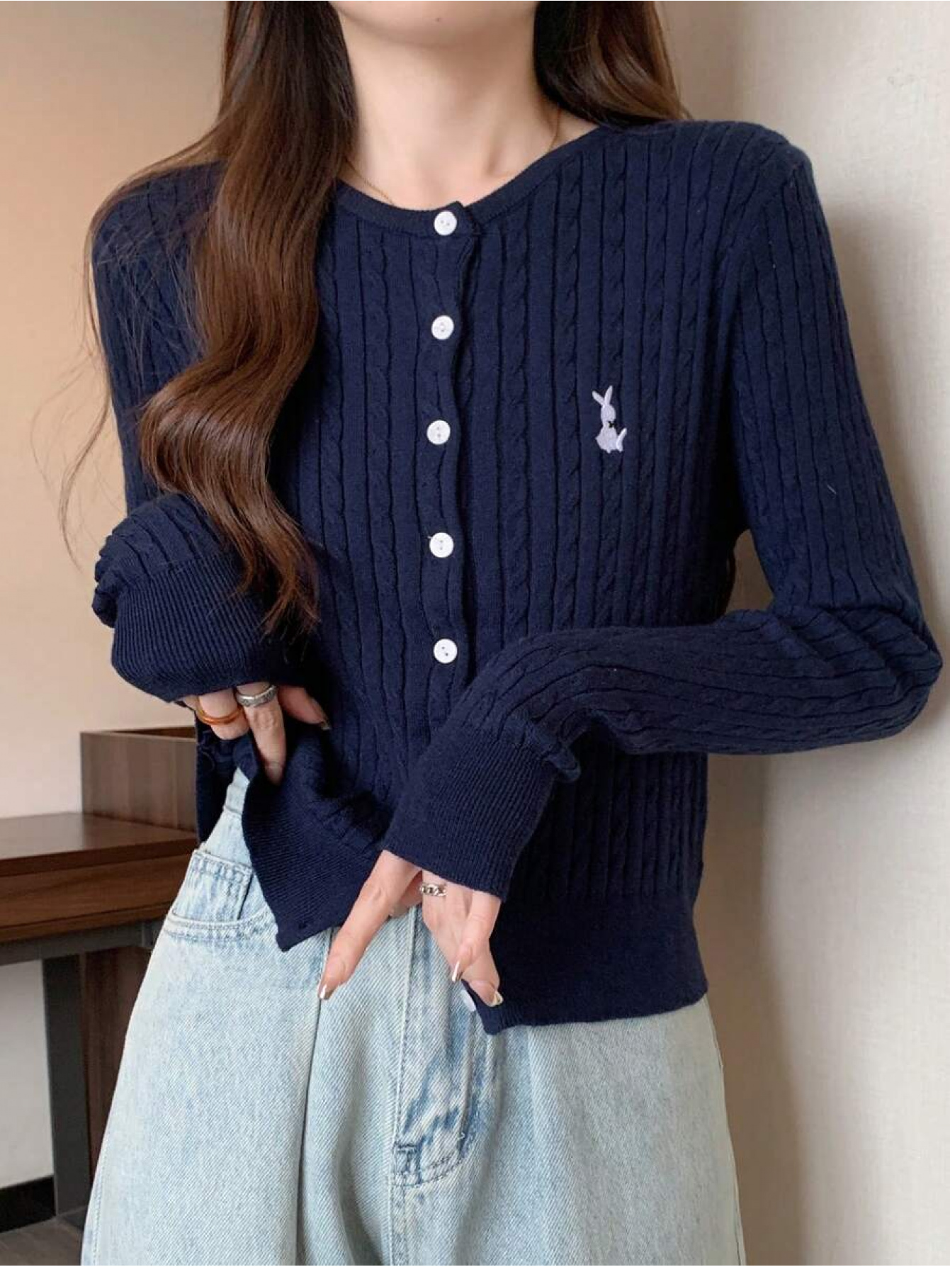 Women'S Elegant Navy Cardigan - Soft Sweater with Button Front, Long Sleeve Winter Coat for Fall/Winter, Office, Party