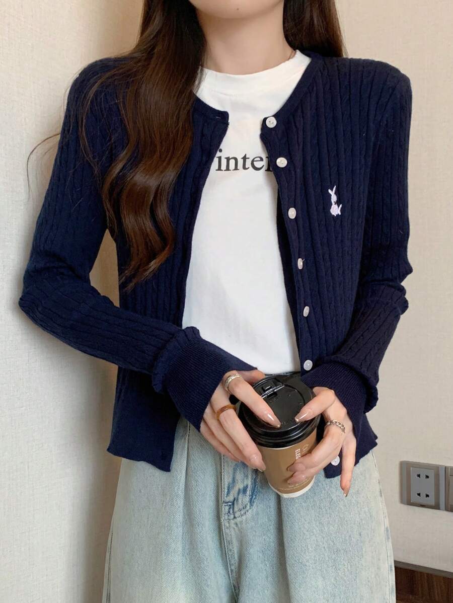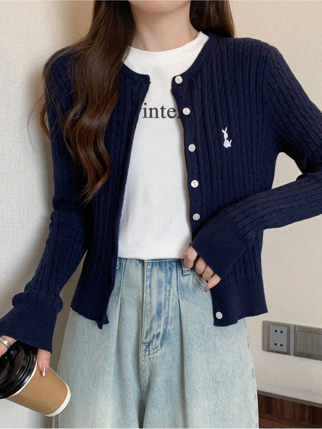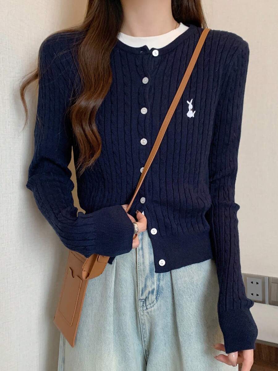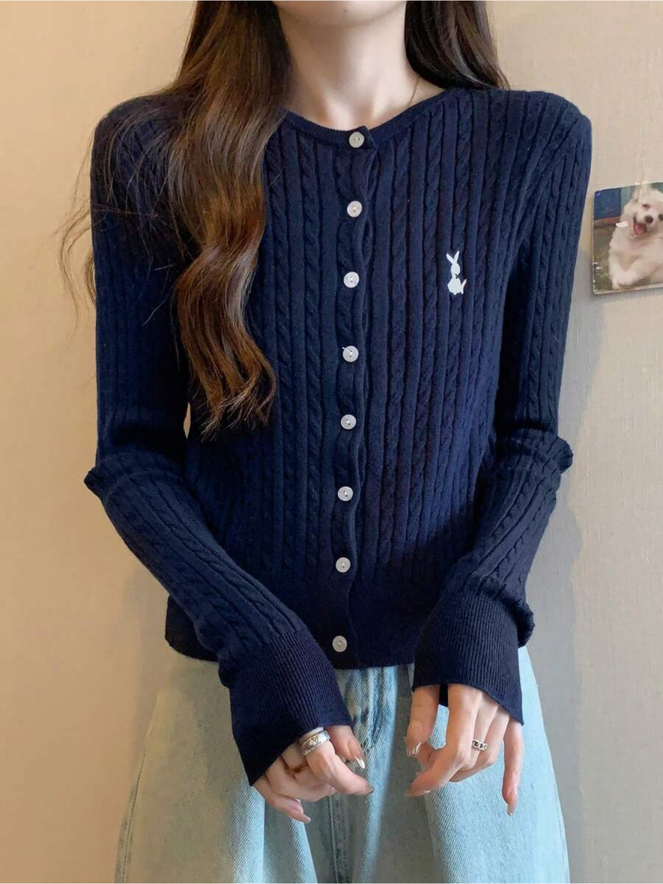 Women'S Elegant Navy Cardigan - Soft Sweater with Button Front, Long Sleeve Winter Coat for Fall/Winter, Office, Party