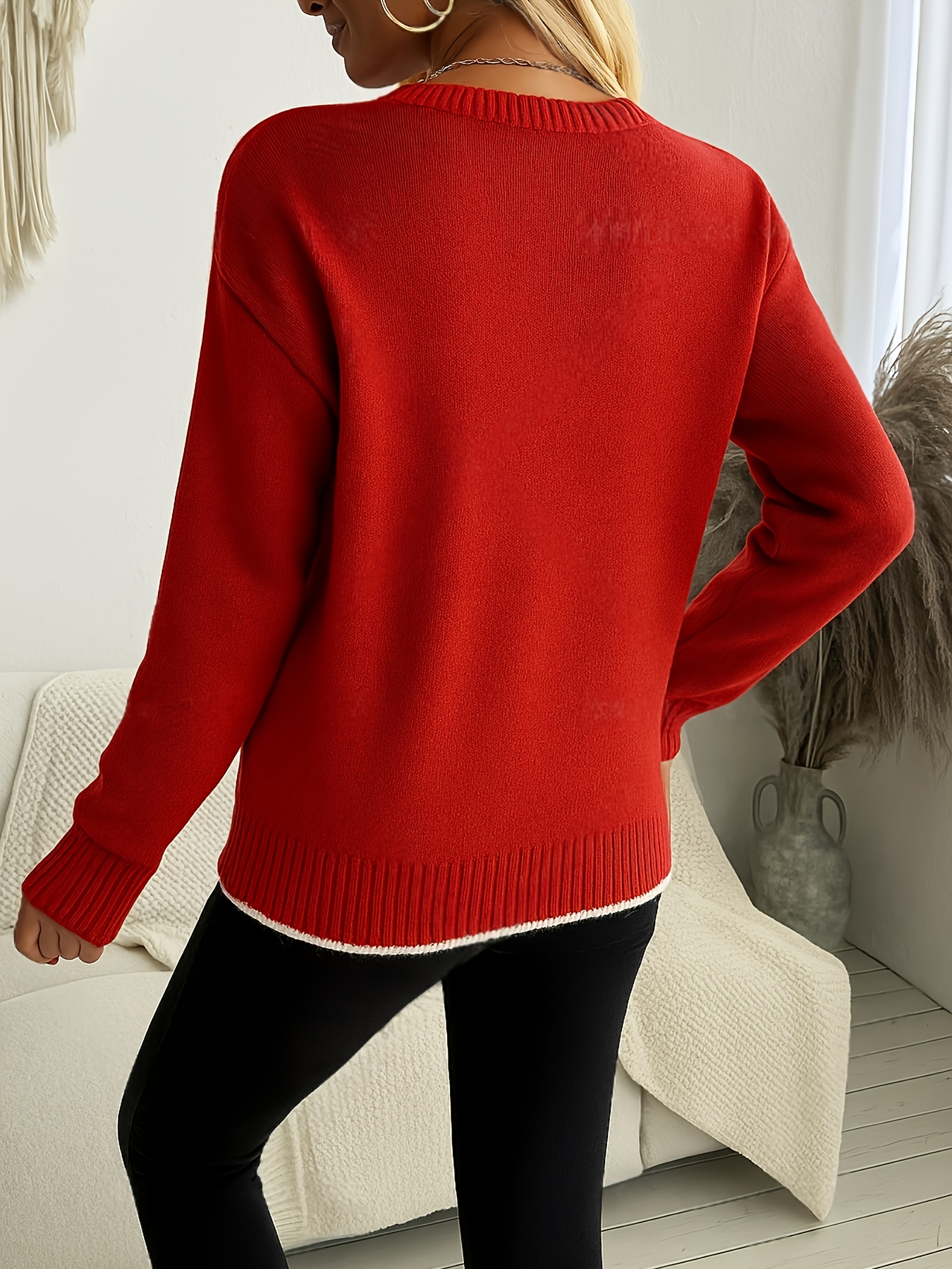 Women'S Snowflake Print Sweater - Winter Season, Holiday Style, Long Sleeves, Contrast Trim, Trendy Holiday Fashion, Ideal For Christmas Parties, Winter Outings, And Festive Events