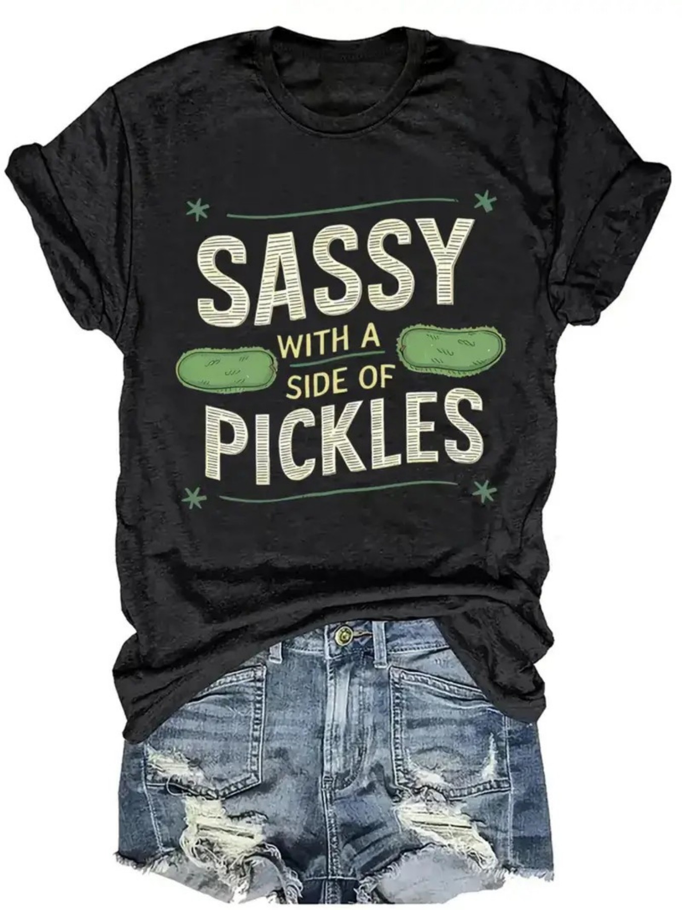 Fashion Letter Anime Print Women's Round Neck T-Shirt, Simple Design, Comfortable and Breathable, Versatile Essential, Suitable for Daily Casual Wear, Showcasing Natural and Elegant Style, Local Shipping