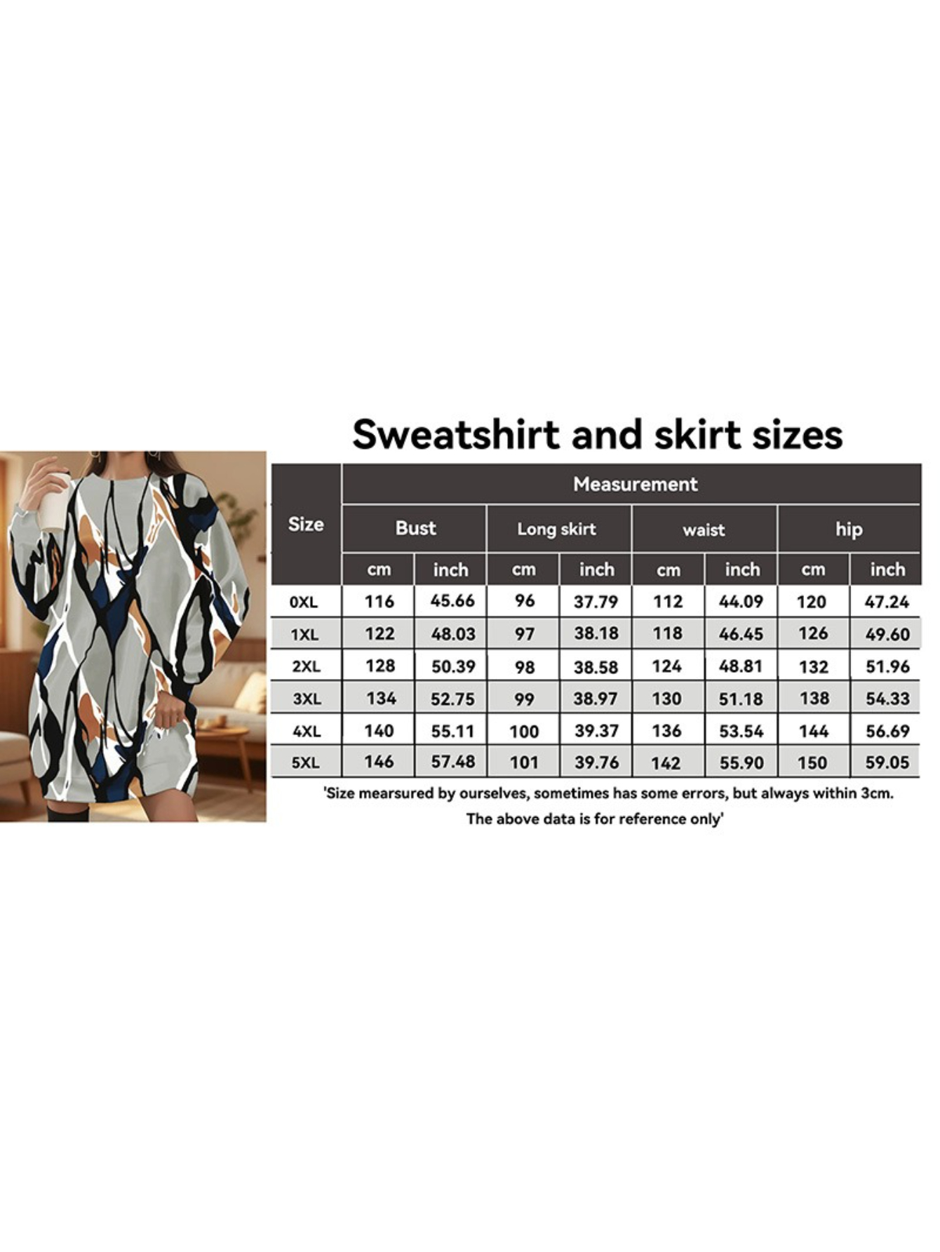 Plus Size - Plus Size Women'S Elegant Black Sequin Heart Print Sweater Skirt - Loose Fit Long Sleeve Crew Neck Pullover, Machine Washable Comfortable Fabric For Spring/fall Casual & Semi-formal Wear, Spring Fall Apparel