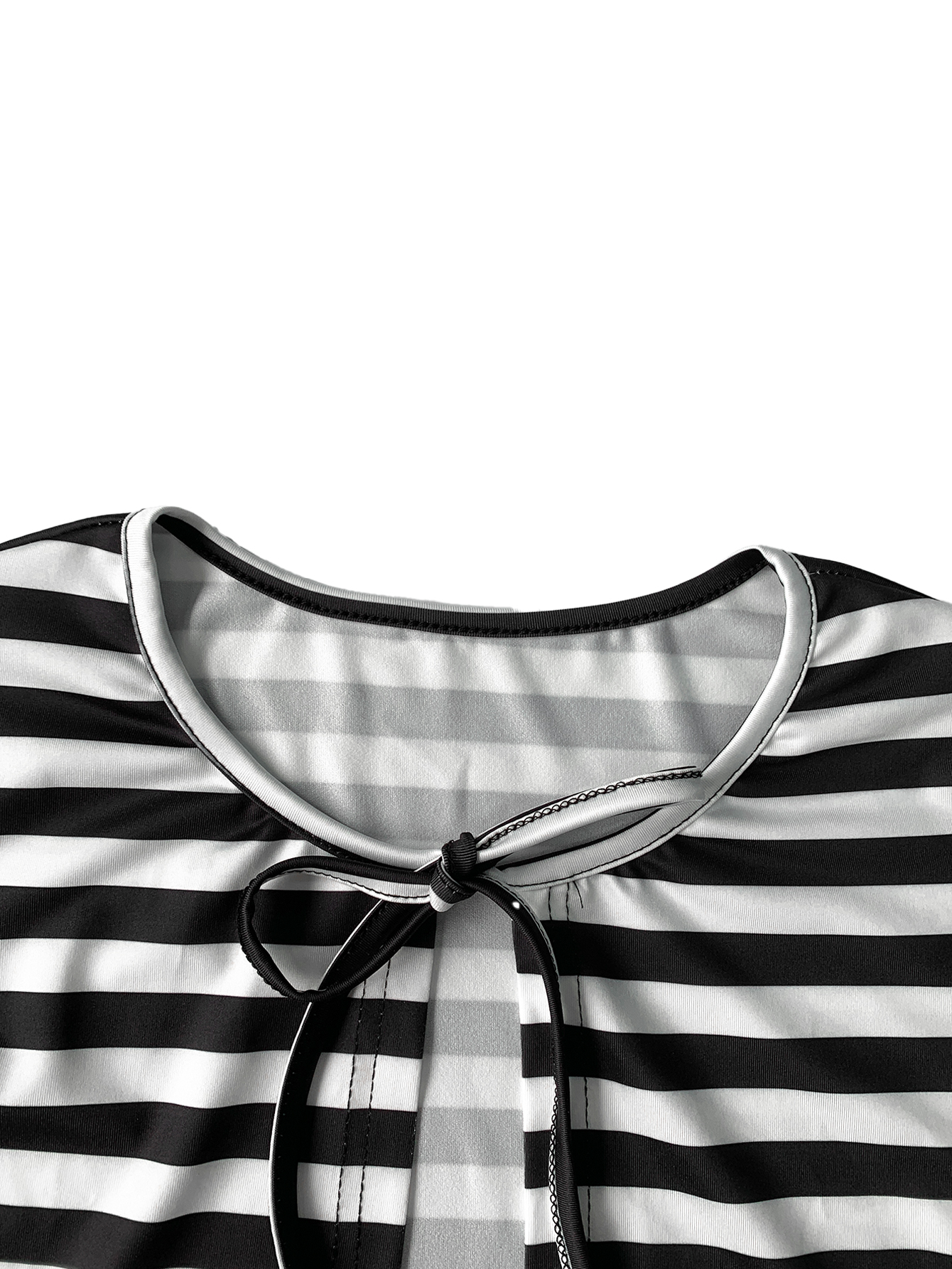 Plus Size - Plus Size, Women'S Plus-Size Elegant Long Sleeve Cardigan - Tie-Up Front, All-Over Black & White Horizontal Lines, Open Front Closure, Non-Stretchy Fabric for Fall/Winter Layering - Office, Party, Everyday Outfits - Women'S Sweater, Cardigan Sweater, Winter Layering Piece, Round Neckline, Durable Knitwear, Office Attire, Classic Design, Quality Stitching, Stylish Sweater, Fashion Lovers