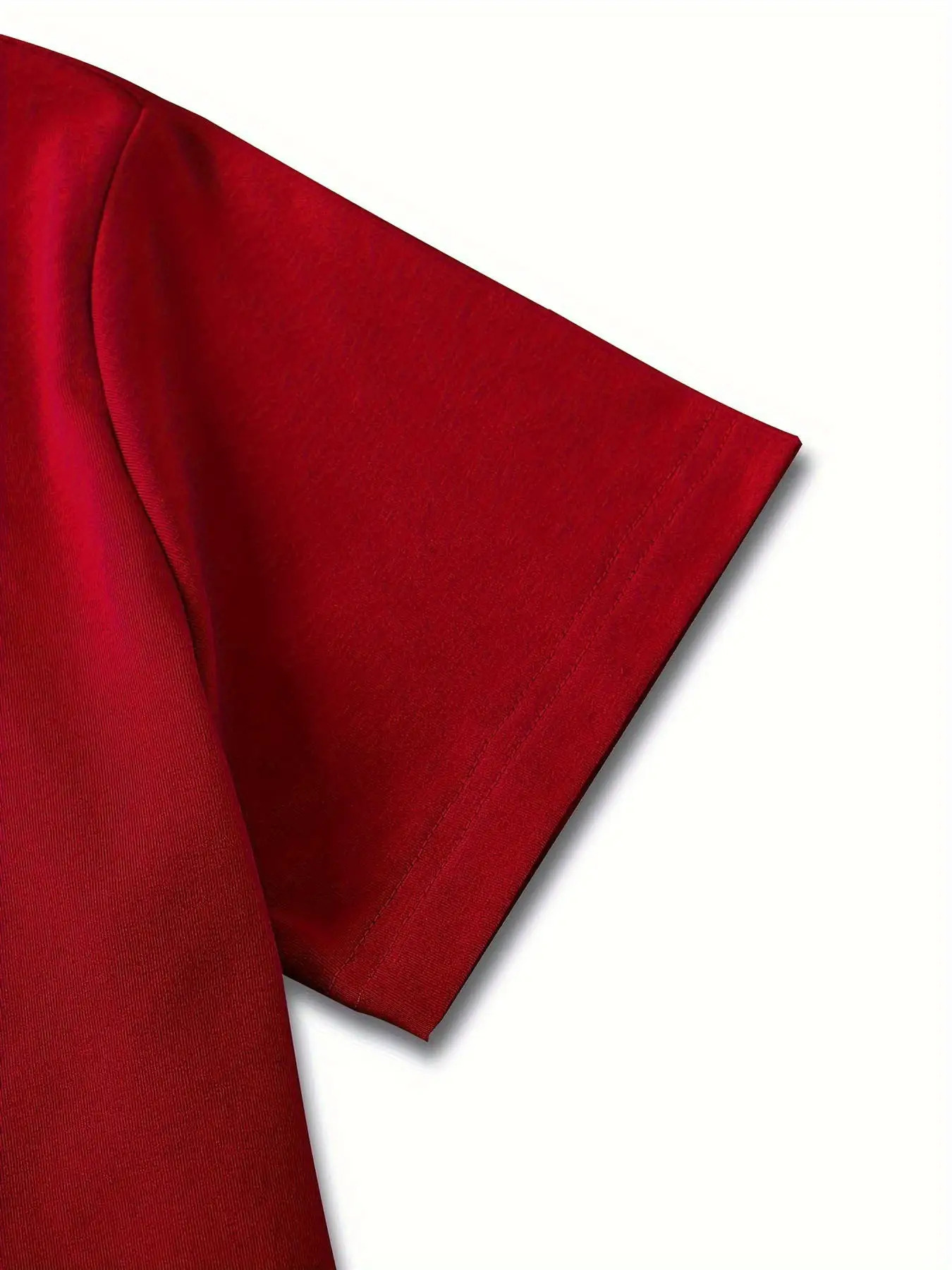 Women's Red Christmas T-Shirt with Santa & Reindeer Print, Merry Christmas Lettering & Gingerbread Men - Casual Round Neck Short Sleeve Holiday Party Outfit, All-Season Wear (Machine Washable) - Festive Gift Apparel