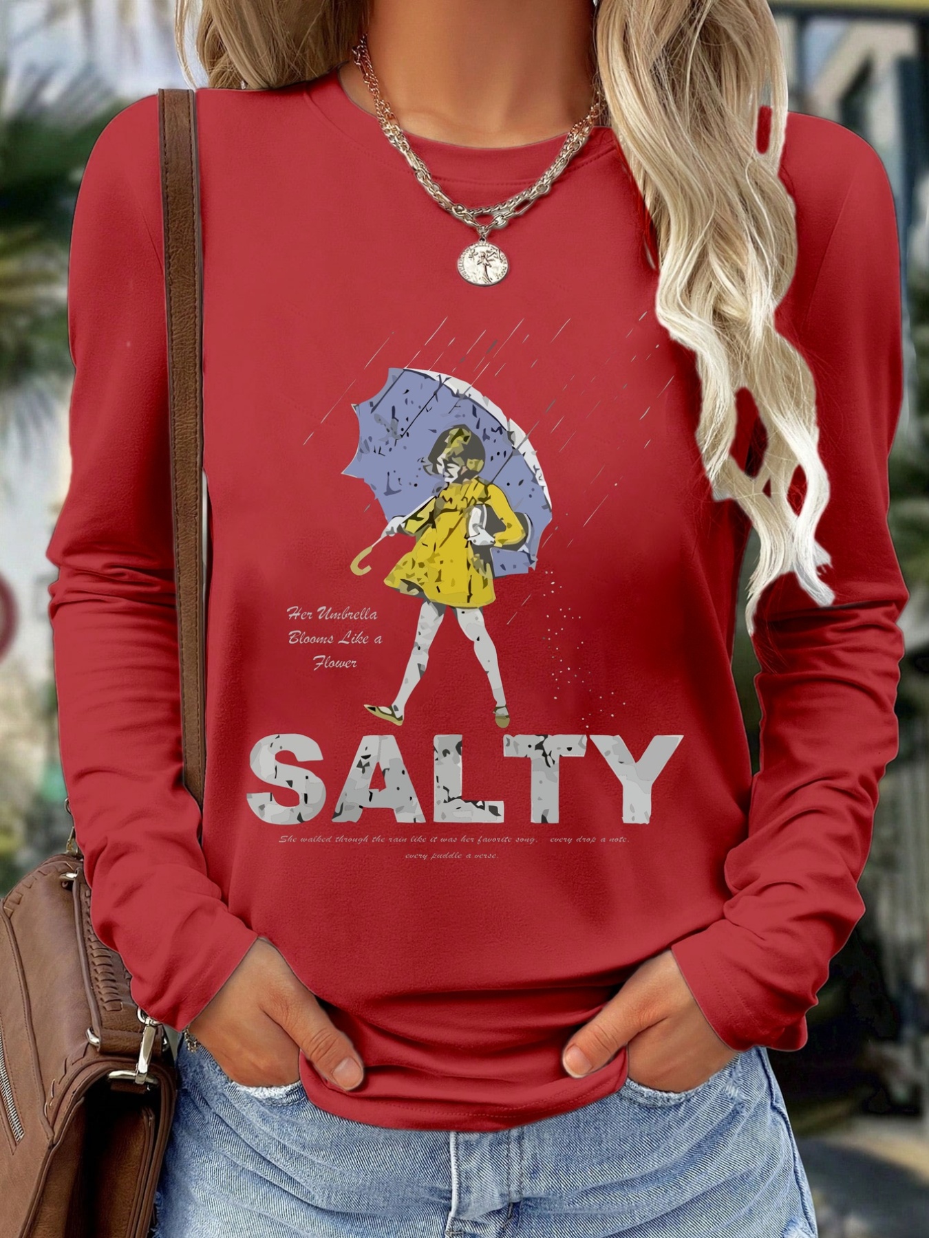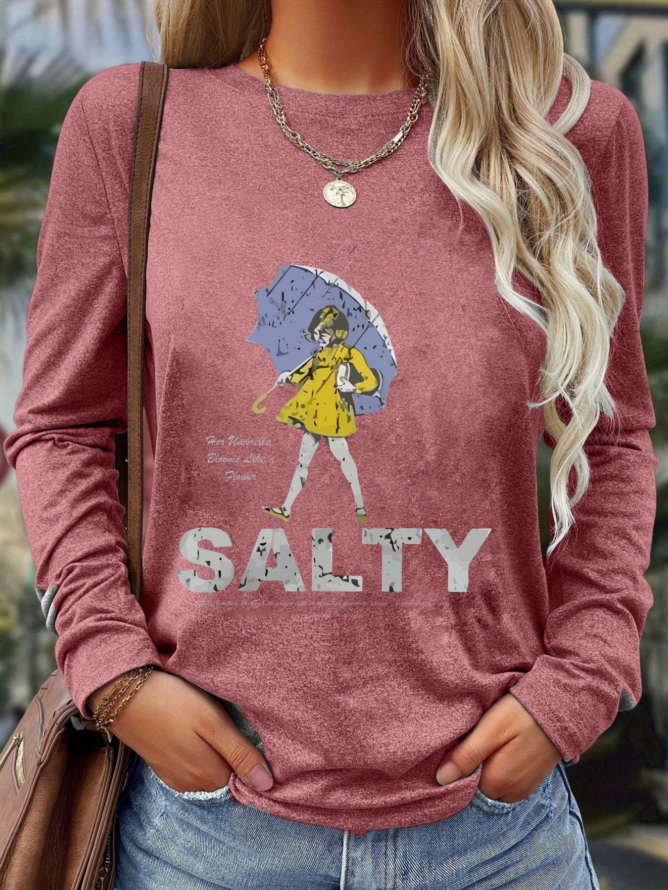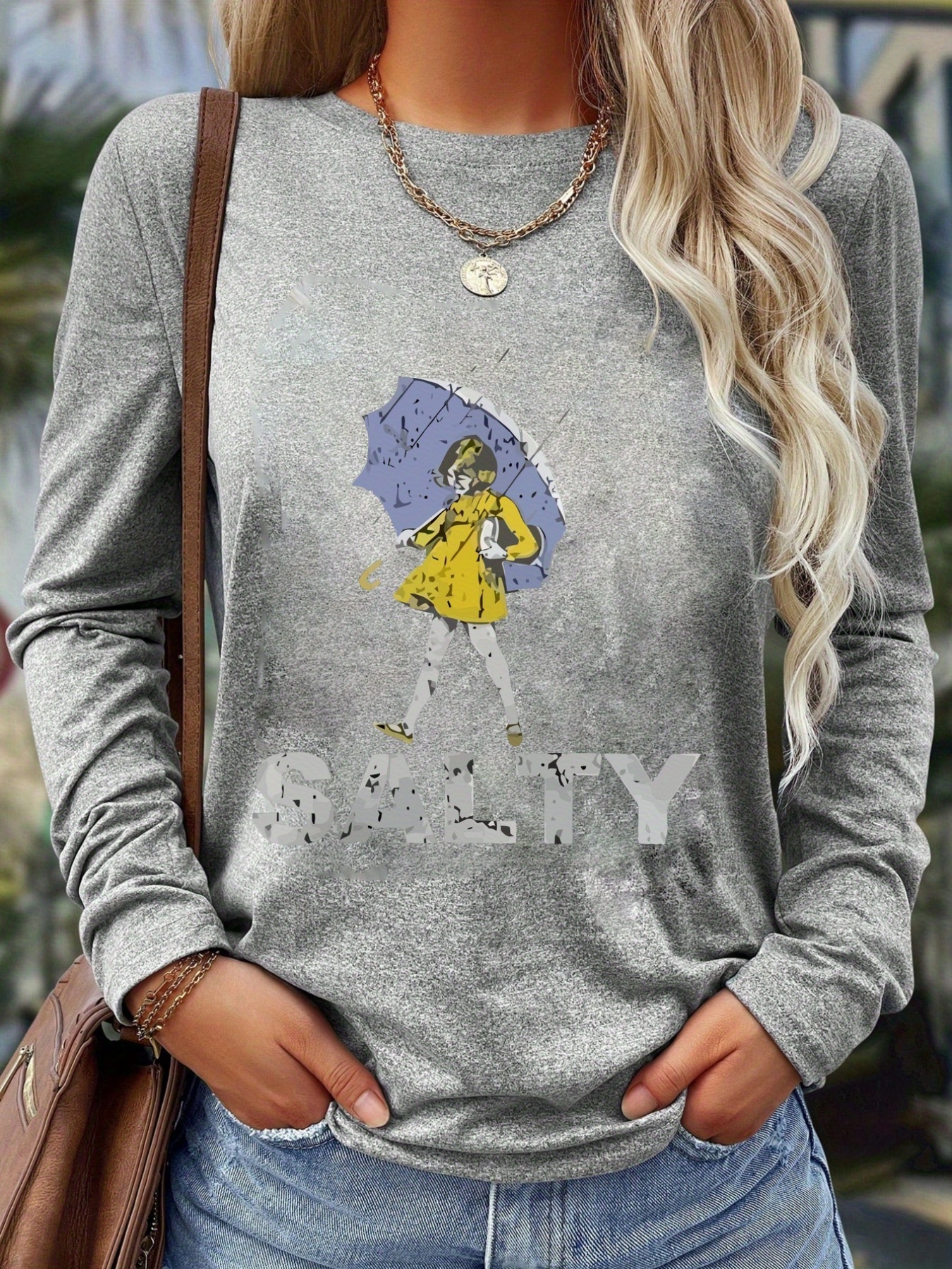 Women'S Long Sleeve T-Shirt - White Top with SALTY Graphic, Crew Neck Casual Everyday Shirt for Women, All-Season Everyday & Party Outfits - from Local Warehouse, Versatile Clothing, Playful Design, Quality Stitching, Stylish Blouse, Fashion Lovers
