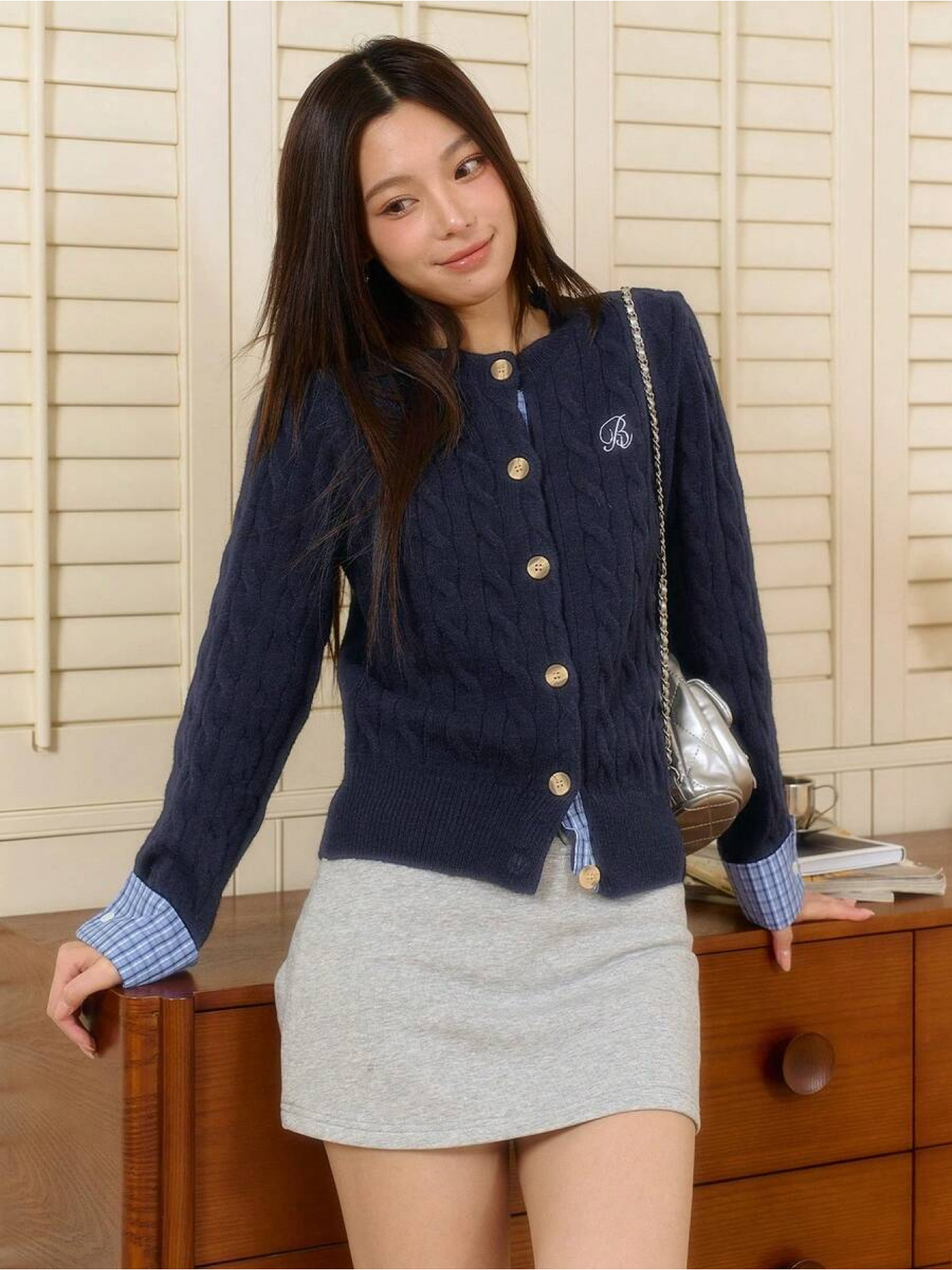 Women's Winter Cardigan Sweater - Off-Shoulder/Boat Neck Collegiate Style Color Block Plaid Patchwork Jacket, Machine Washable Patchwork Sweaters for Layering (Autumn/Winter)